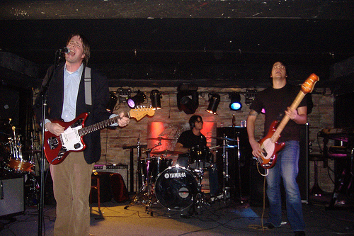 The Diggs celebrated the release of the new CD ctrl-alt-del at Union Hall on Friday night. With its collection of infectious alt-power-pop songs, the CD has been in constant rotation at my home. What became evident at Union Hall was that The Diggs are also proficient instrumentalists. As a live act, each member of the trio adds dimensions to the songs that are not initially apparent on the album. From my side-stage vantage point, I focused primarily on the bass playing of Robert Haussman, whose active fretwork and equipment manipulations were a pleasure to behold.